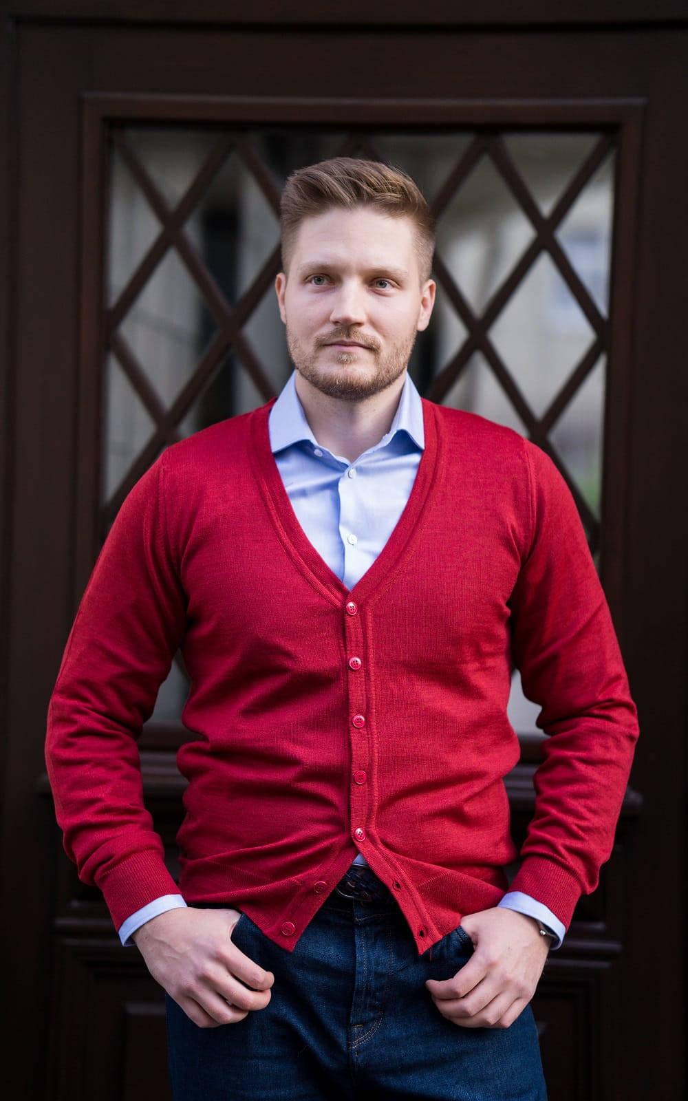 czerwony kardigan